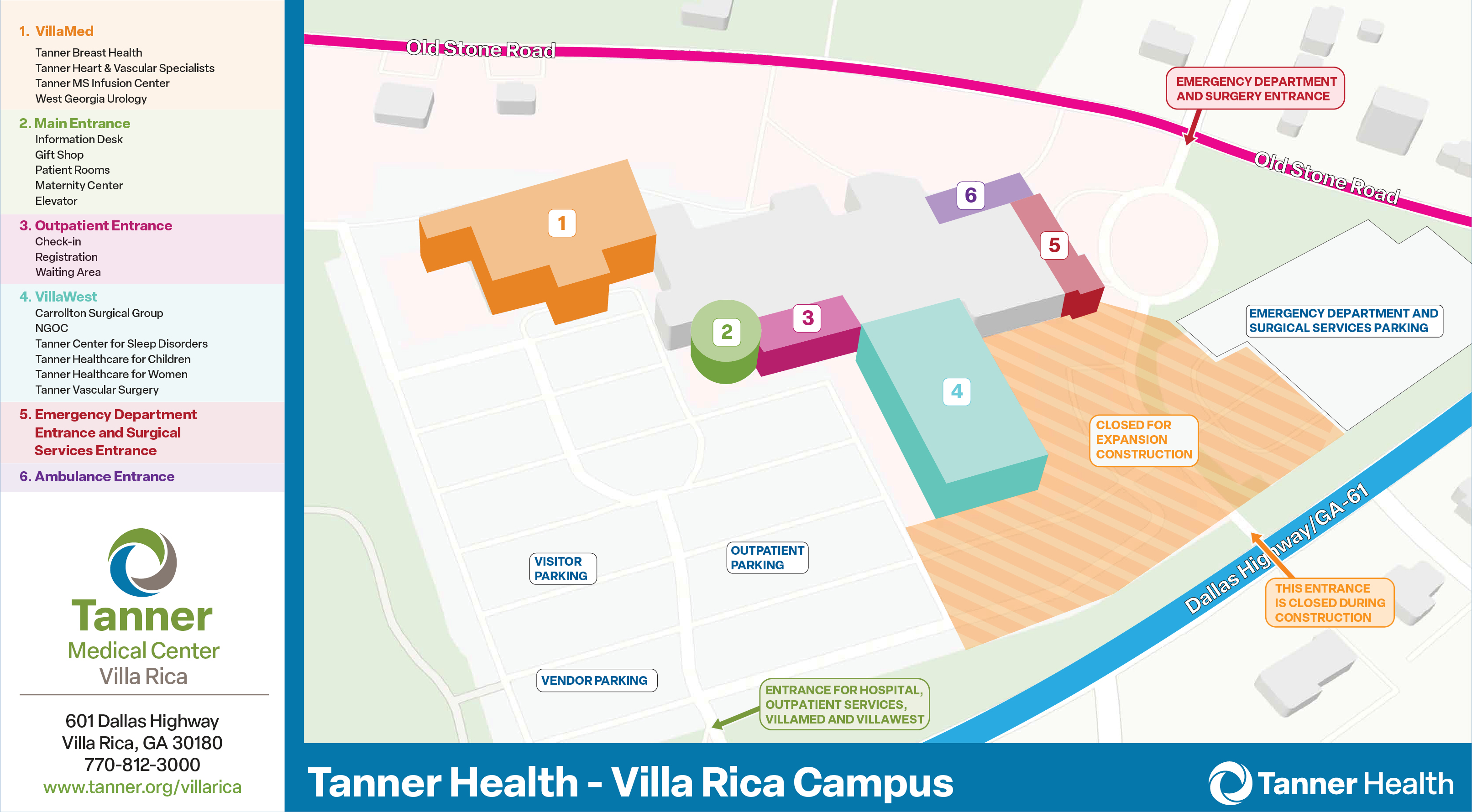 Throughout construction, all Tanner practices at the Villa Rica campus will remain open for the convenience of patients and visitors.