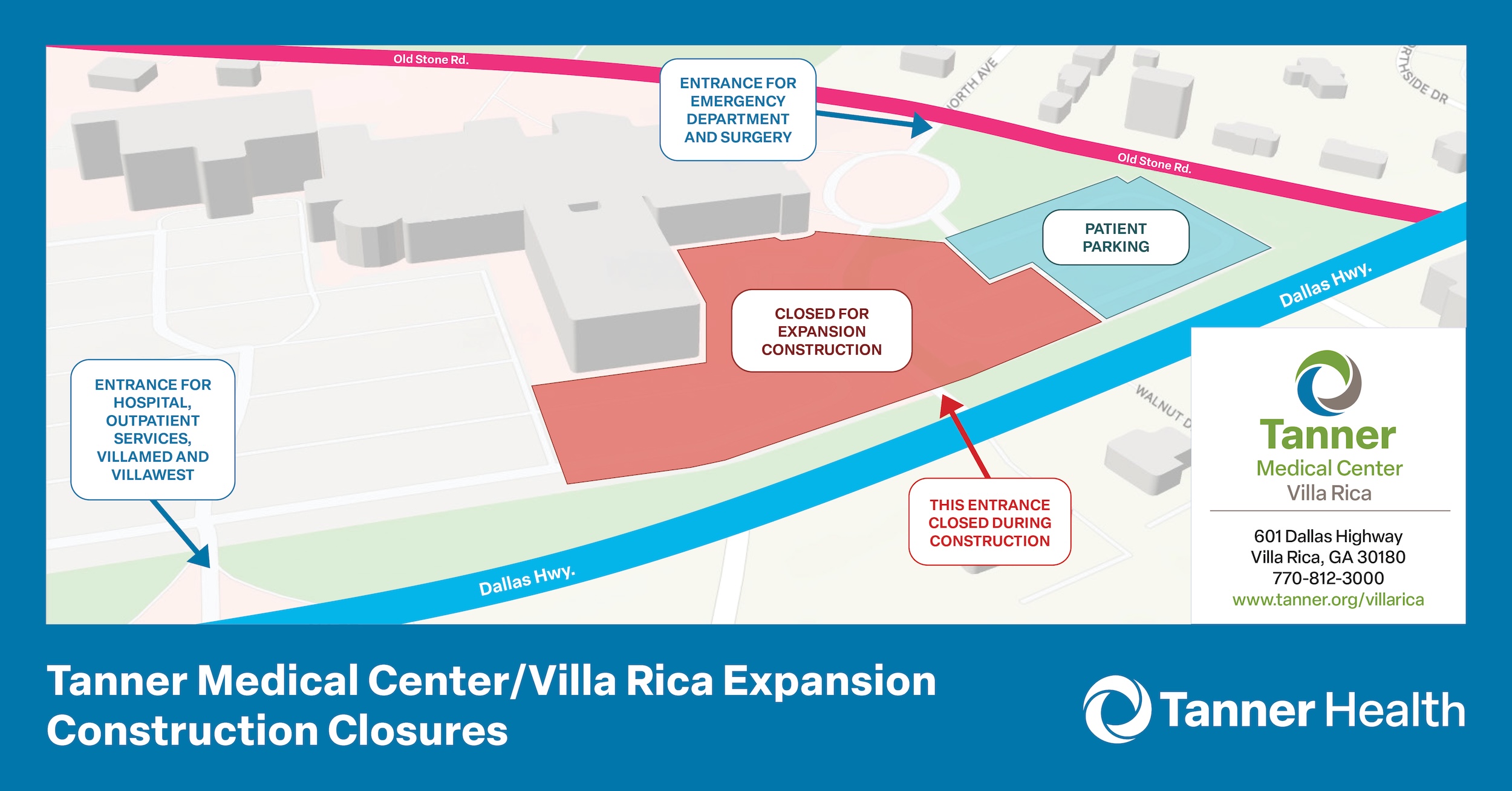 Throughout construction, all Tanner practices at the Villa Rica campus will remain open for the convenience of patients and visitors.